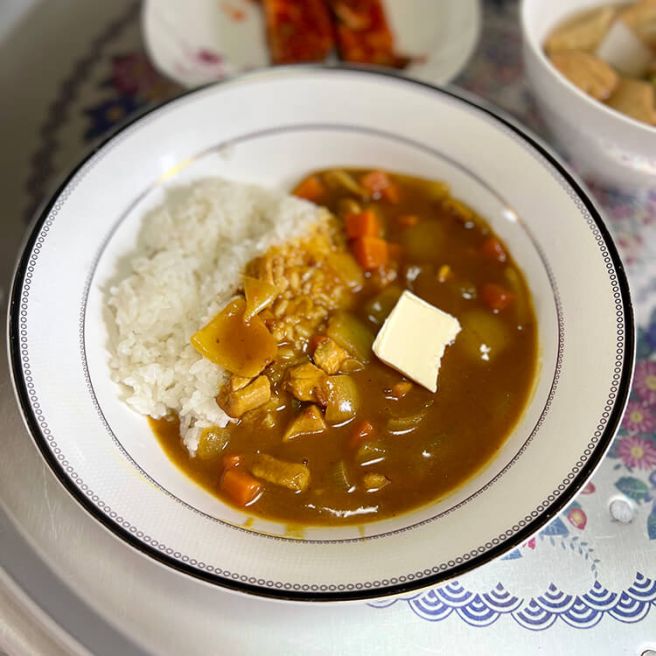 카레 만들기 황금레시피 그릇에 밥을 담고 만들어둔 카레 올려주면 맛있는 카레 만들기 황금레시피가 완성돼요. 노란 카레에 칠리가루 대신 고춧가루 톡톡 뿌려내면 보기 좋습니다. 부드럽고 감칠맛이 좋아서 빵 찍어 먹어도 맛있어요. 카레 만들 때 양파를 반으로 줄여주고 감자나 브로콜리, 당근등을 추가해도 좋아요.