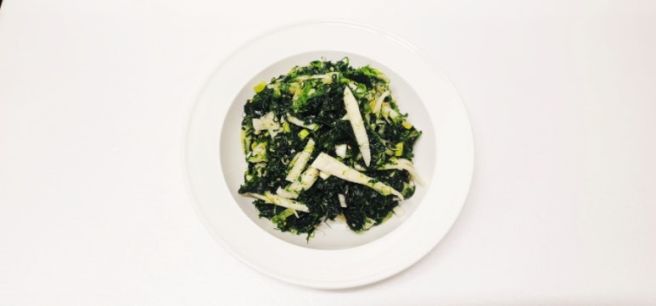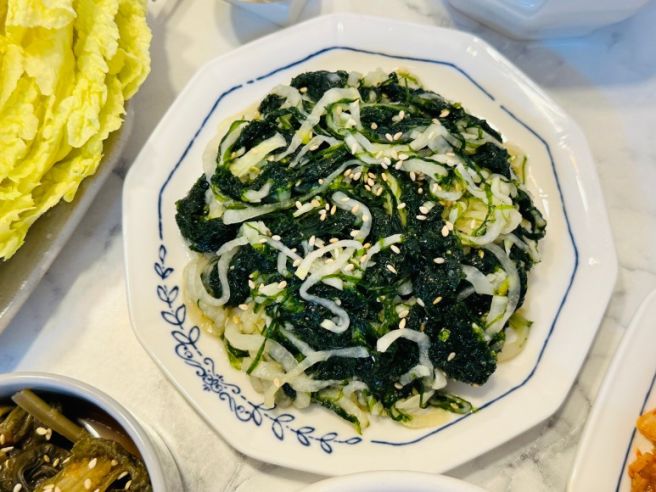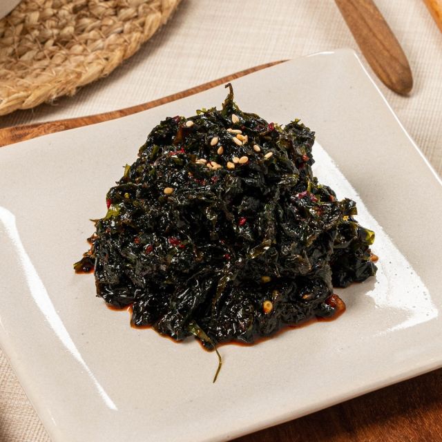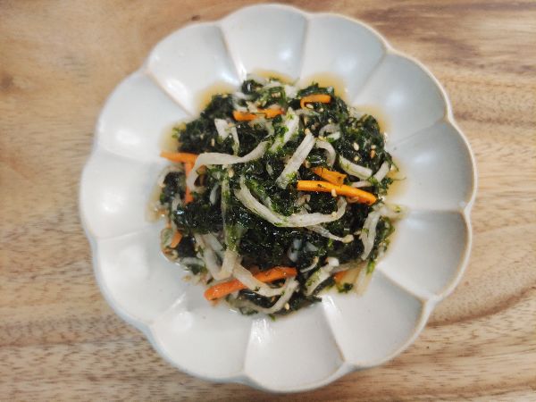 - 완성된 파래무침을 접시에 담고 통깨를 뿌려서 제공합니다.