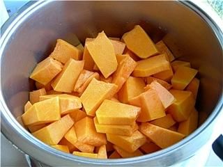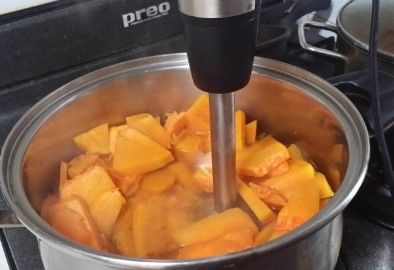 - 갈기: 삶은 호박과 고구마를 핸드 믹서나 일반 믹서기로 곱게 갈아줍니다. 개인의 취향에 따라 약간 거칠게 갈아도 좋습니다.