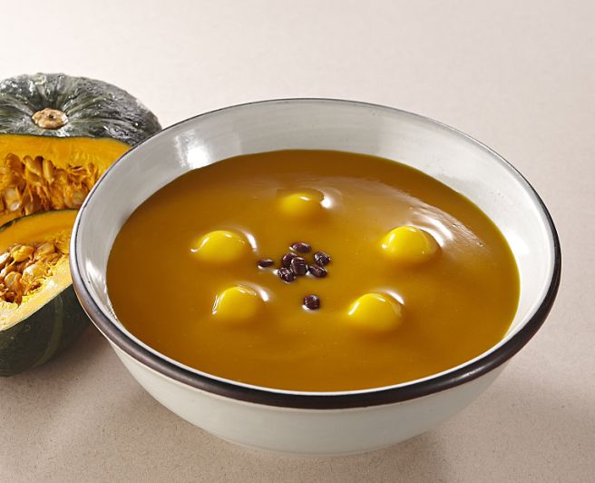 - 서빙: 완성된 호박죽 위에 삶은 강낭콩을 올려주면 더욱 맛있습니다.