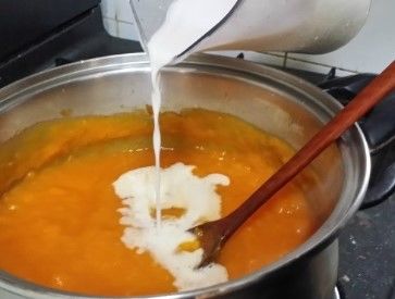 - 농도 조절: 찹쌀가루 70g에 물 1컵을 넣고 잘 풀어준 후, 갈아놓은 호박 혼합물에 조금씩 넣어가며 농도를 조절합니다. 호박죽은 약간 되직해야 맛있습니다.