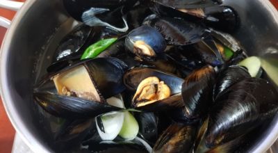 - 홍합을 넣고 홍합이 입을 열 때까지 끓여주세요